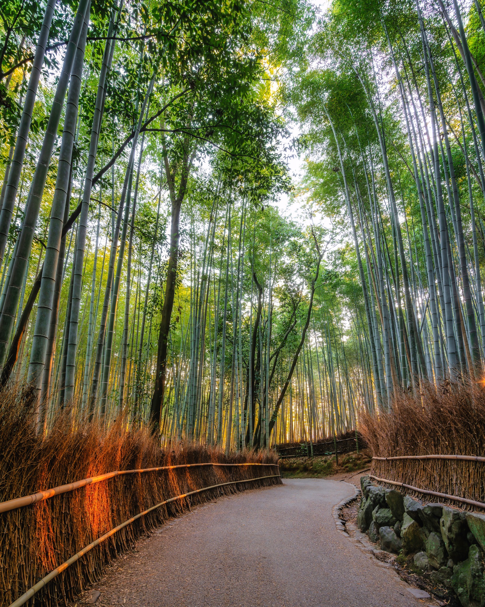 - Rừng tre Arashiyama – hay còn gọi là rừng tre Sagano – là khu rừng tre nổi tiếng nhất Nhật Bản, là một trong những thắng cảnh hàng đầu của Kyoto. Những cây tre cao sừng sững che bầu trời, quanh năm xanh tốt, tạo nên một khung cảnh tươi mới nhưng ngoạn mục mà bạn có thể bắt gặp vào bất kỳ mùa nào Xuân Hạ Thu Đông. Điểm check-in không thể bỏ lỡ.