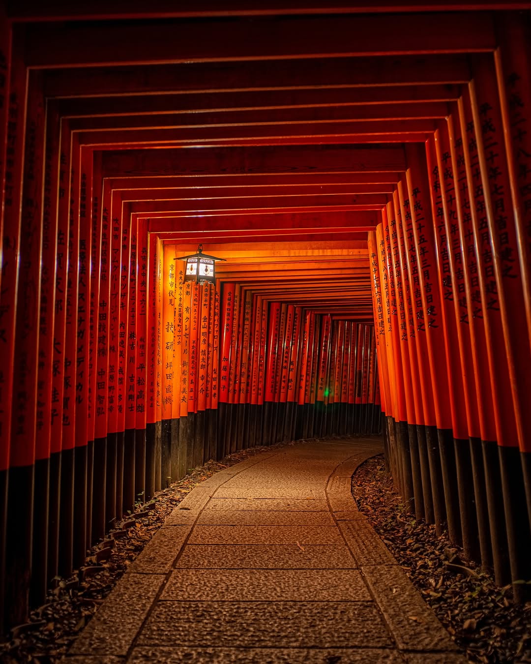 - Đền Ngàn Cột (Fushimi Inari) – biểu tượng linh thiêng và kỳ vĩ giữa lòng Là một trong những biểu tượng tâm linh nổi bật nhất Nhật Bản, đền Fushimi Inari nỔi bật với hàng nghìn cổng Torii đỏ rực kéo dài trên sườn núi. Du khách sẽ được trải nghiệm hành trình vừa tĩnh lặng, vừa thiêng liêng, hòa mình vào không gian cổ kính mang đậm dấu ấn Thần đạo Nhật Bản.